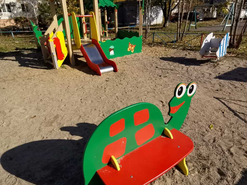 В результате проделанной работы в этом году, появилось игровое оборудование для малышей до 4 лет: теневой навес, качалки на пружине, песочный дворик, скамейки, урны.
