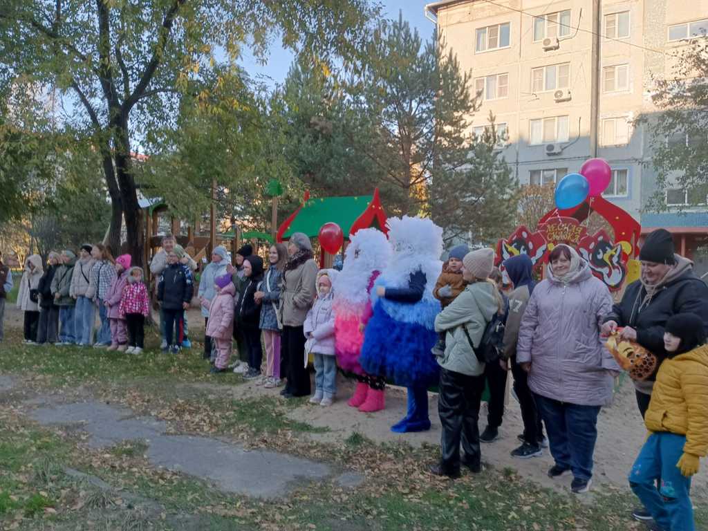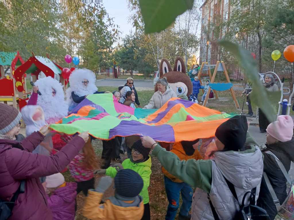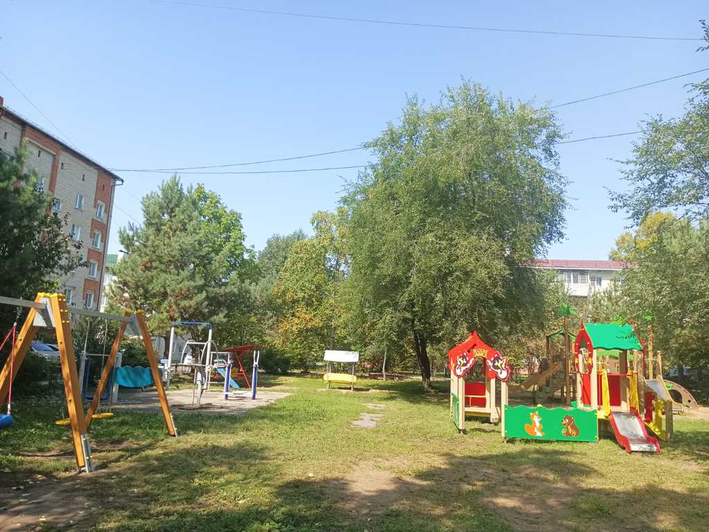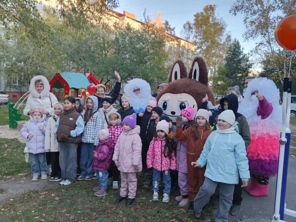 И в этом году в итоге проекта «Дошколенок» установлено новое детское игровое оборудование для детишек от 2 до 7 лет (качели двухсекционные, подвеска качелей с сидением резиновым (для малышей) песочница "Песочный дворик с горкой "Лесная сказка"", столик детский со скамьями и навесом).